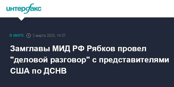 Москва. 2 марта. INTERFAX.RU - Замглавы МИД РФ Сергей Рябков сообщил, что у него были контакты с американской стороной по вопросам Договора о стратегических наступательных вооружениях (ДСНВ) в ходе его текущего визита в Женеву.