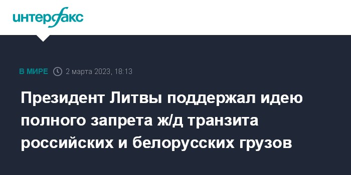 Москва. 2 марта. INTERFAX.RU - Президент Литвы Гитанас Науседа ожидает, что госкомпания "Литовские железные дороги" (Lietuvos gelezinkeliai, LTG) примет решение о прекращении перевозок российских и белорусских грузов.