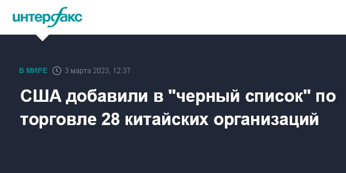 Москва. 3 марта. INTERFAX.RU - Администрация Байдена внесла в "черный список" 28 китайских организаций за предполагаемые нарушения санкций, сообщает в пятницу The Financial Times.