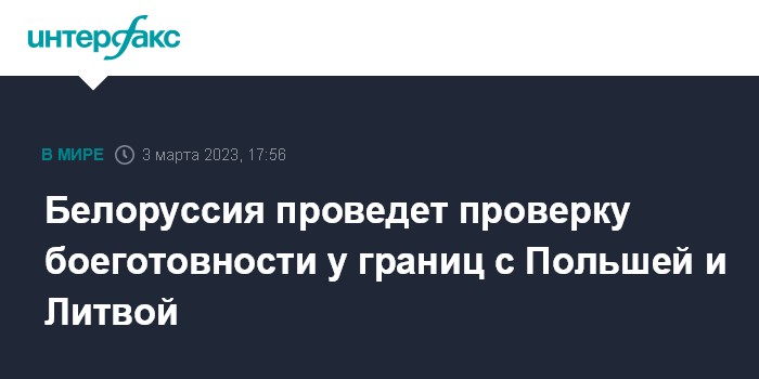 Москва. 3 марта. INTERFAX.RU - Подразделения механизированной бригады, дислоцирующейся у границы Белоруссии с Польшей и Литвой, приведены в готовность к выполнению задач в рамках проверки боеготовности, сообщило белорусское Минобороны.