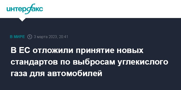 Москва. 3 марта. INTERFAX.RU - Принятие Евросоюзом новых стандартов по выбросам углекислого газа для легковых автомобилей и автобусов откладывается на более поздний срок из-за противодействия Германии, некоторых других стран и правоцентристского крыла европейских законодателей, сообщило в пятницу представительство Швеции, которая председательствует в Совете ЕС.