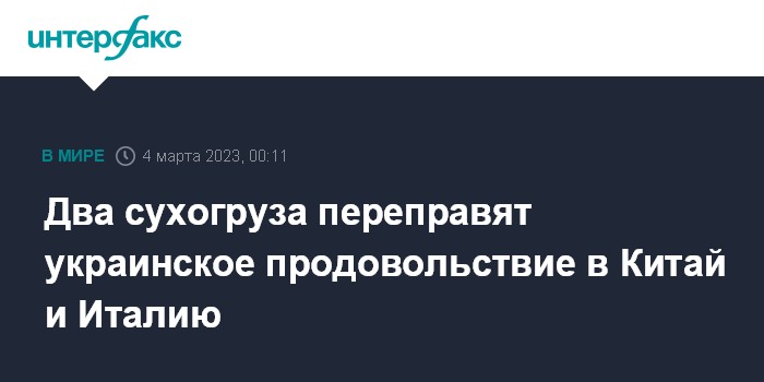 Два сухогруза переправят украинское продовольствие в Китай и Италию