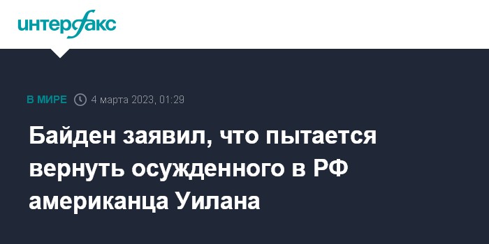 Москва. 4 марта. INTERFAX.RU - Американские власти делают все возможное для возвращения осужденного в России за шпионаж американца Пола Уилана, заявил журналистам президент США Джо Байден.
