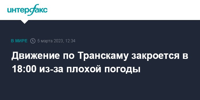 Движение по Транскаму закроется в 18:00 из-за плохой погоды