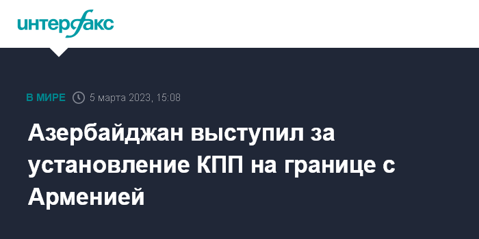 Москва. 5 марта. INTERFAX.RU - Министерство иностранных дел Азербайджана после инцидента в воскресенье, в результате которого есть жертвы и пострадавшие, заявило, что для предотвращения провокаций необходимо установить контрольно-пропускной пункт на границе с Арменией и вывести армянских военных из Карабаха.