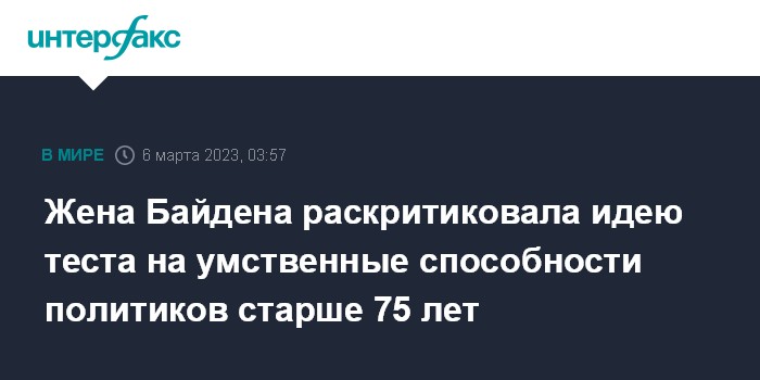 Жена Байдена раскритиковала идею теста на умственные способности политиков старше 75 лет