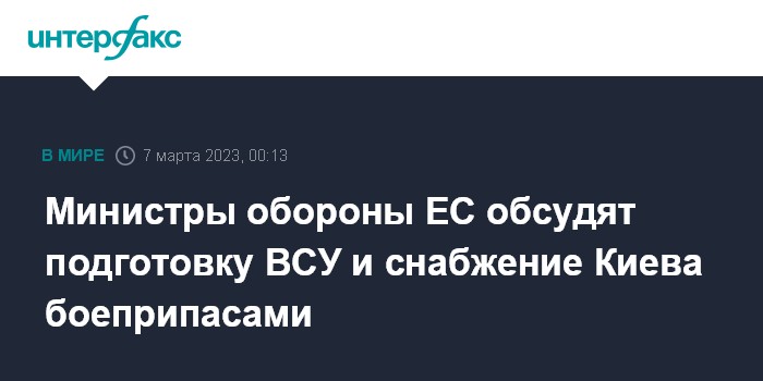 Министры обороны ЕС обсудят подготовку ВСУ и снабжение Киева боеприпасами
