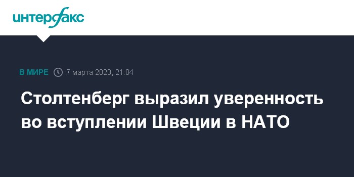 Москва. 7 марта. INTERFAX.RU - Генсек НАТО Йенс Столтенберг заявил, что Швеция без сомнения присоединится к Североатлантическому альянсу, вопрос состоит лишь в том, сколько времени займет этот процесс.