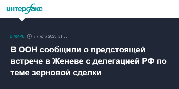 В ООН сообщили о предстоящей встрече в Женеве с делегацией РФ по теме зерновой сделки