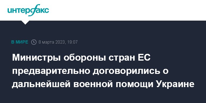 Министры обороны стран ЕС предварительно договорились о дальнейшей военной помощи Украине