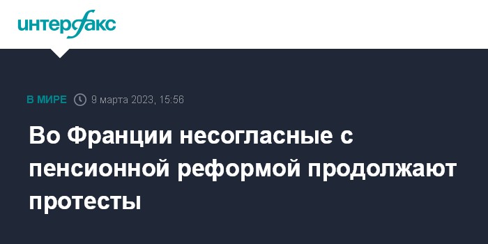 Москва. 9 марта. INTERFAX.RU - После рекордных протестных выступлений во Франции 7 марта против пенсионной реформы, собравших по официальным данным 1,28 млн манифестантов, продолжается забастовочное движение в разных секторах.