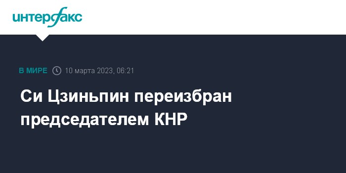 Москва. 10 марта. INTERFAX.RU - Си Цзиньпин на проходящей в китайской столице первой сессии Всекитайского собрания народных представителей (ВСНП, высший орган законодательной власти Китая) 14-го созыва переизбран на пост председателя КНР.