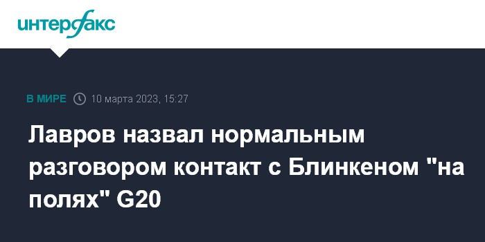 Лавров назвал нормальным разговором контакт с Блинкеном "на полях" G20