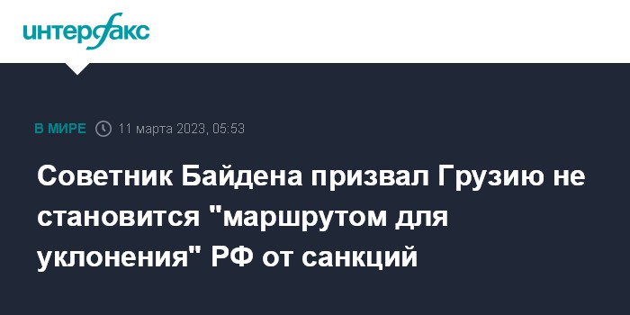 Советник Байдена призвал Грузию не становится "маршрутом для уклонения" РФ от санкций