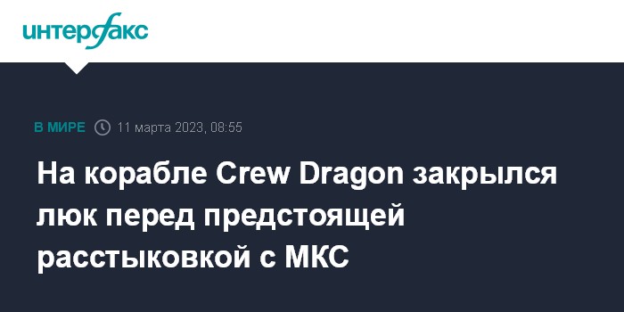 Он был закрыт в 00:29 по времени Восточного побережья США (08:29 мск). В 02:05 по времени Восточного побережья США (10:05 мск) планируется расстыковка с МКС. После автономного полета продолжительностью около 19 часов корабль должен приводниться в Атлантическом океане у побережья Флориды.
