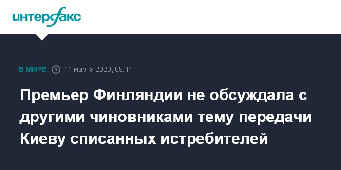 Москва. 11 марта. INTERFAX.RU - Предложение премьер-министра Финляндии Санны Марин передать Украине списанные истребители Hornet ни с кем в стране не обсуждалось, заявил президент Саули Ниинистё.