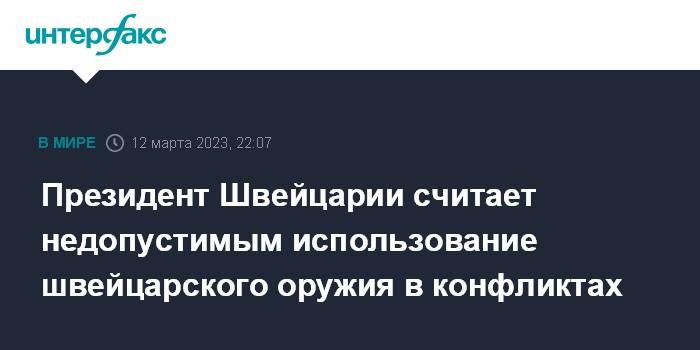 Президент Швейцарии считает недопустимым использование швейцарского оружия в конфликтах