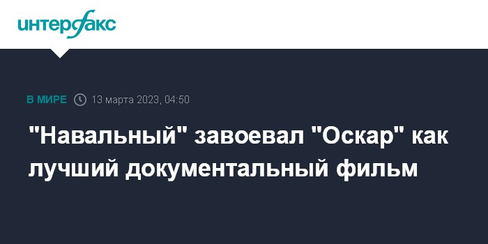 Москва. 13 марта. INTERFAX.RU - Картина канадского режиссера Дэниела Роэра "Навальный" получила премию "Оскар" в номинации "Лучший документальный фильм". Об этом объявлено на проходящей в Лос-Анджелесе (штат Калифорния) 95-й церемонии вручения наград Американской киноакадемии киноискусств.