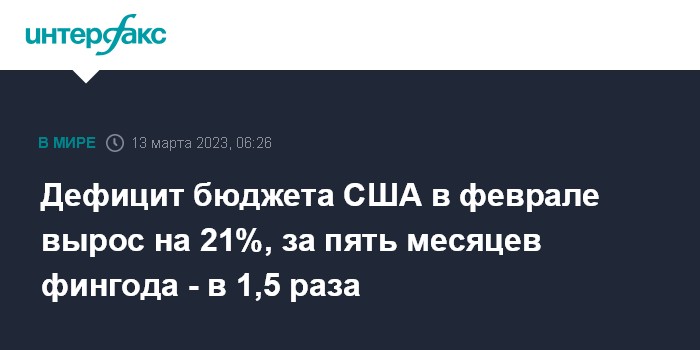 Дефицит бюджета США в феврале вырос на 21%, за пять месяцев фингода - в 1,5 раза