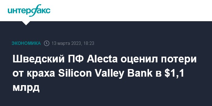 Шведский ПФ Alecta оценил потери от краха Silicon Valley Bank в $1,1 млрд
