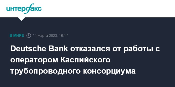 Москва. 14 марта. INTERFAX.RU - Deutsche Bank AG больше не работает с российским юридическим лицом Каспийского трубопроводного консорциума – АО "КТК-Р".