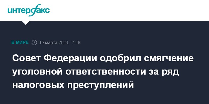 Совет Федерации одобрил смягчение уголовной ответственности за ряд налоговых преступлений