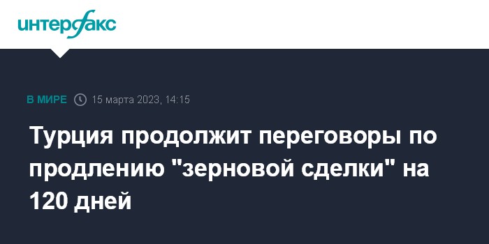 Москва. 15 марта. INTERFAX.RU - Анкара продолжит переговоры с участниками черноморской "зерновой сделки" по ее продлению не на 60, а на 120 дней, заявил в среду турецкий министр обороны Хулуси Акар.