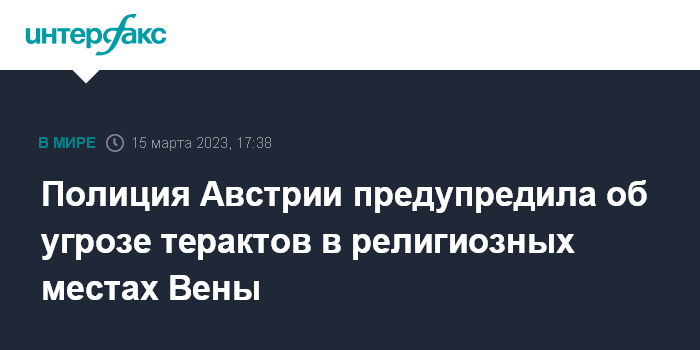 Москва. 15 марта. INTERFAX.RU - Полиция Австрии предупредила об угрозе нападения исламистов на места культа в Вене, в городе усилена безопасность, сообщает Associated Press.