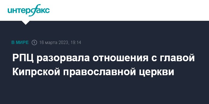 Москва. 16 марта. INTERFAX.RU - Священный Синод Московского патриархата признал невозможным евхаристическое общение с главой Кипрской православной церкви архиепископом Георгием, который поминает лидера неканонической Православной церкви Украины (ПЦУ) Епифания Думенко.