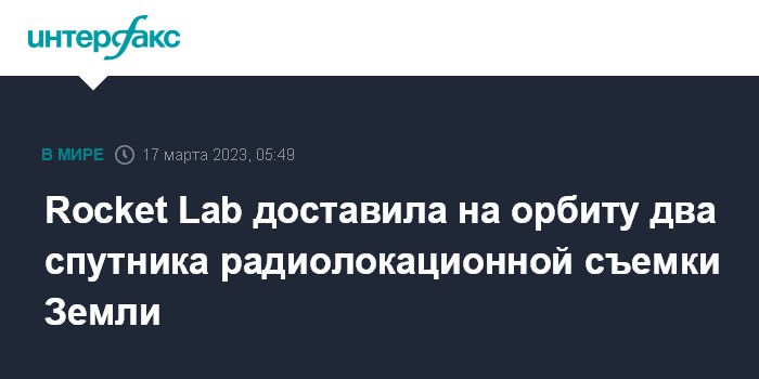 Москва. 17 марта. INTERFAX.RU - Американская ракета легкого класса Electron в пятницу по московскому времени успешно вывела на орбиту два коммерческих спутника радиолокационной съемки Земли Capella-9 и Capella-10, сообщила компания-разработчик носителя Rocket Lab.