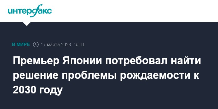 Премьер Японии потребовал найти решение проблемы рождаемости к 2030 году
