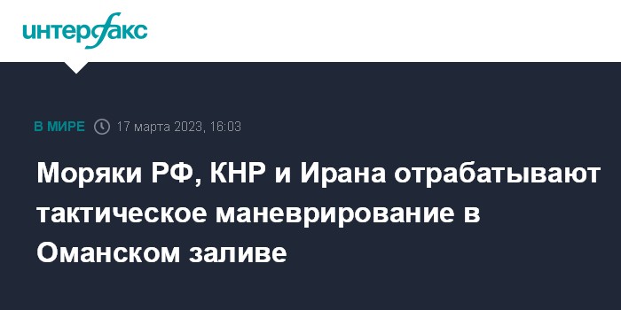 Москва. 17 марта. INTERFAX.RU - Участники российско-китайских-иранских морских учений "Морской пояс безопасности - 2023" вышли в море для решения практических задач, сообщил Северный флот в пятницу.