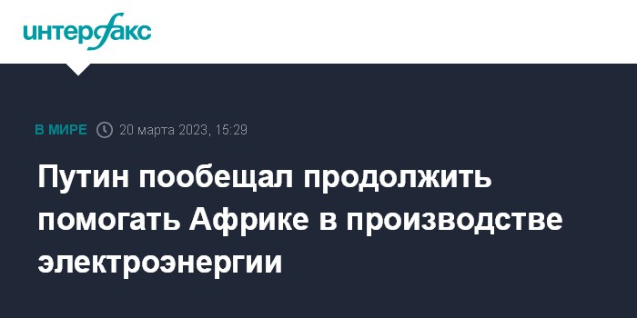 Москва. 20 марта. INTERFAX.RU - Россия готова продолжать помощь африканским странам в строительстве электростанций, в том числе атомных, заявил президент РФ Владимир Путин.