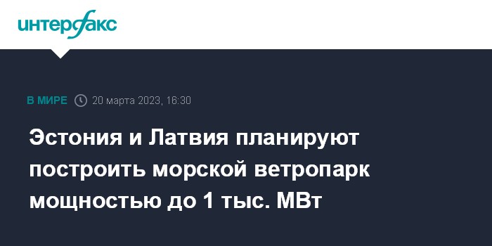 Эстония и Латвия планируют построить морской ветропарк мощностью до 1 тыс. МВт
