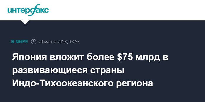Москва. 20 марта. INTERFAX.RU - Японский премьер Фумио Кисида, прибывший с визитом в Индию, заявил, что Япония собирается вложить до 2030 года свыше $75 млрд в развивающиеся страны Индо-Тихоокеанского региона. Об этом сообщает Kyodo News.