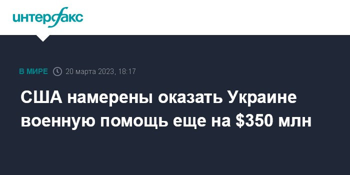 Москва. 20 марта. INTERFAX.RU - Администрация США собирается в понедельник, 20 марта, объявить о выделении Украине очередного пакета военной помощи - на сумму в $350 млн, сообщает Associated Press (AP) со ссылкой на неназванных представителей американских властей.