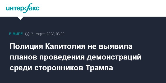 "Хотя отдел разведки и межведомственной координации выявил реакции, которые включают призывы к протестам, массовому гражданскому неповиновению, насилию и нападкам на правоохранительные органы, причастные к возможному аресту бывшего президента, в настоящее время не отслеживается никаких прямых или заслуживающих доверия угроз Капитолию США", - говорится в оценке.