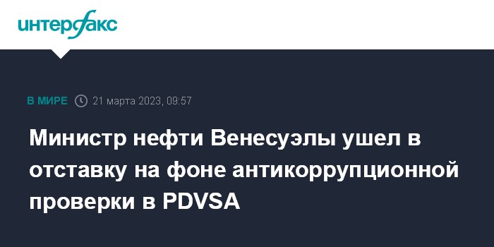 Министр нефти Венесуэлы ушел в отставку на фоне антикоррупционной проверки в PDVSA