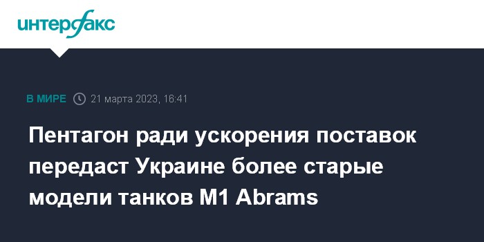 Москва. 21 марта. INTERFAX.RU - Минобороны США ускоряет процесс передачи Украине танков M1 Abrams, сделав выбор в пользу их более старых отремонтированных моделей, сообщает во вторник Associated Press (AP) со ссылкой на неназванных представителей американской администрации.