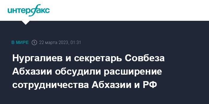 Москва. 22 марта. INTERFAX.RU - Перспективы расширения абхазско-российского сотрудничества обсудили во время встречи в Москве секретарь Совета безопасности Абхазии Сергей Шамба и первый заместитель секретаря российского Совбеза Рашид Нургалиев, сообщила пресс-служба абхазского МИД.