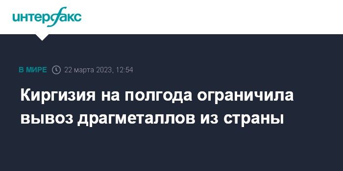 Москва. 22 марта. INTERFAX.RU - Правительство Киргизии в среду приняло решение ввести сроком на шесть месяцев ограничения на вывоз из страны драгоценных металлов и сырьевых товаров, содержащих драгметалл, сообщила пресс-служба киргизского кабинета министров.