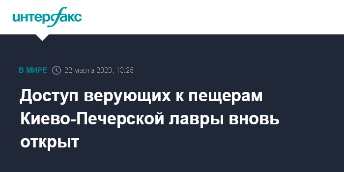 Москва. 22 марта. INTERFAX.RU - Комиссия министерства культуры Украины в среду утром провела ревизию Дальних пещер Киево-Печерской лавры, теперь и Дальние, и Ближние пещеры снова открыты для паломников, сообщает информационно-просветительский отдел Украинской православной церкви.