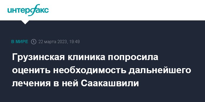 Грузинская клиника попросила оценить необходимость дальнейшего лечения в ней Саакашвили