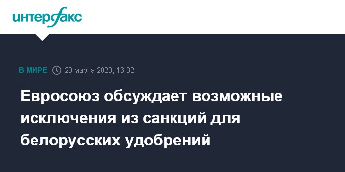 О том, что Еврокомиссия в январе начала консультации по изменению санкций против Белоруссии, чтобы предусмотреть в них исключения для удобрений, агентству рассказали источники.