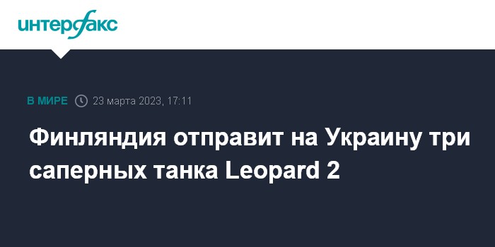 Москва. 23 марта. INTERFAX.RU - Финляндия приняла решение о предоставлении Украине очередного пакета военной помощи на сумму более 160 млн евро.