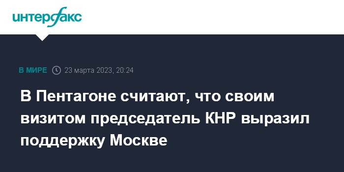 В Пентагоне считают, что своим визитом председатель КНР выразил поддержку Москве