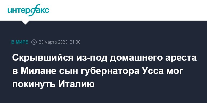 Скрывшийся из-под домашнего ареста в Милане сын губернатора Усса мог покинуть Италию