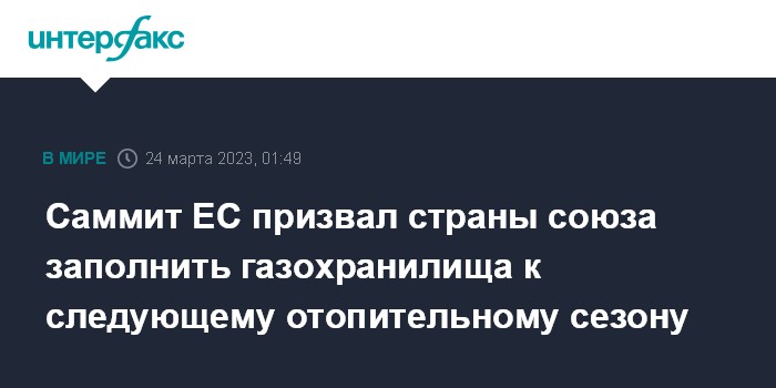 "В то время как энергетическая ситуация в Европейском союзе улучшилась, Европейский совет призывает (Европейскую) комиссию и государства-члены обеспечить готовность и планирование на случай непредвиденных обстоятельств в преддверии предстоящего заполнения газохранилищ и (следующего) отопительного сезона", - говорится в опубликованном в четверг вечером документе.