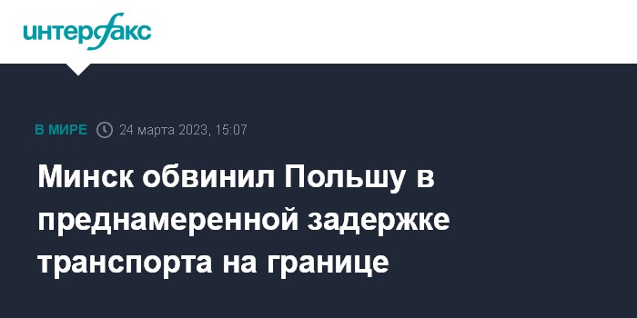 Москва. 24 марта. INTERFAX.RU - Польша искусственно замедляет оформление транспорта, въезжающего с белорусской территории, ситуация с очередями становится все более напряженной, заявил агентству "БелТА" представитель Госпогранкомитета Белоруссии Антон Бычковский.