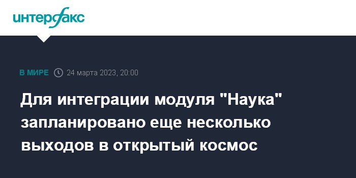 Москва. 24 марта. INTERFAX.RU - Российские космонавты в ходе работ в открытом космосе весной-летом 2023 года завершат интеграцию модуля "Наука" в состав российского сегмента Международной космической станции (МКС), сообщили в "Роскосмосе" в пятницу.